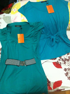 I've been searching for salmon-colored top to pair with a black lace with pink underskirt from BYSI, but I saw these green colored clothes instead. The blouse is green as well, though in the picture, it looks blue.