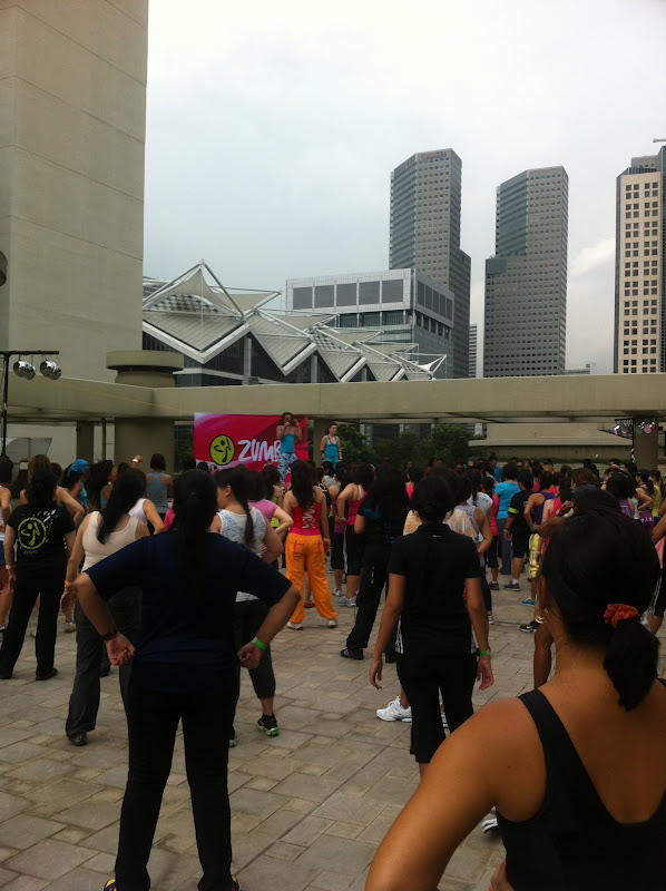 On one song, the instructor looked up and waved at the guests staying at the hotel overlooking the rooftop of Marina Square. Then all the zumba attendees also waved, so they waved back.. Then, a few minutes after, we saw the dad dancing with us, and next the mom was doing the same. So cute!